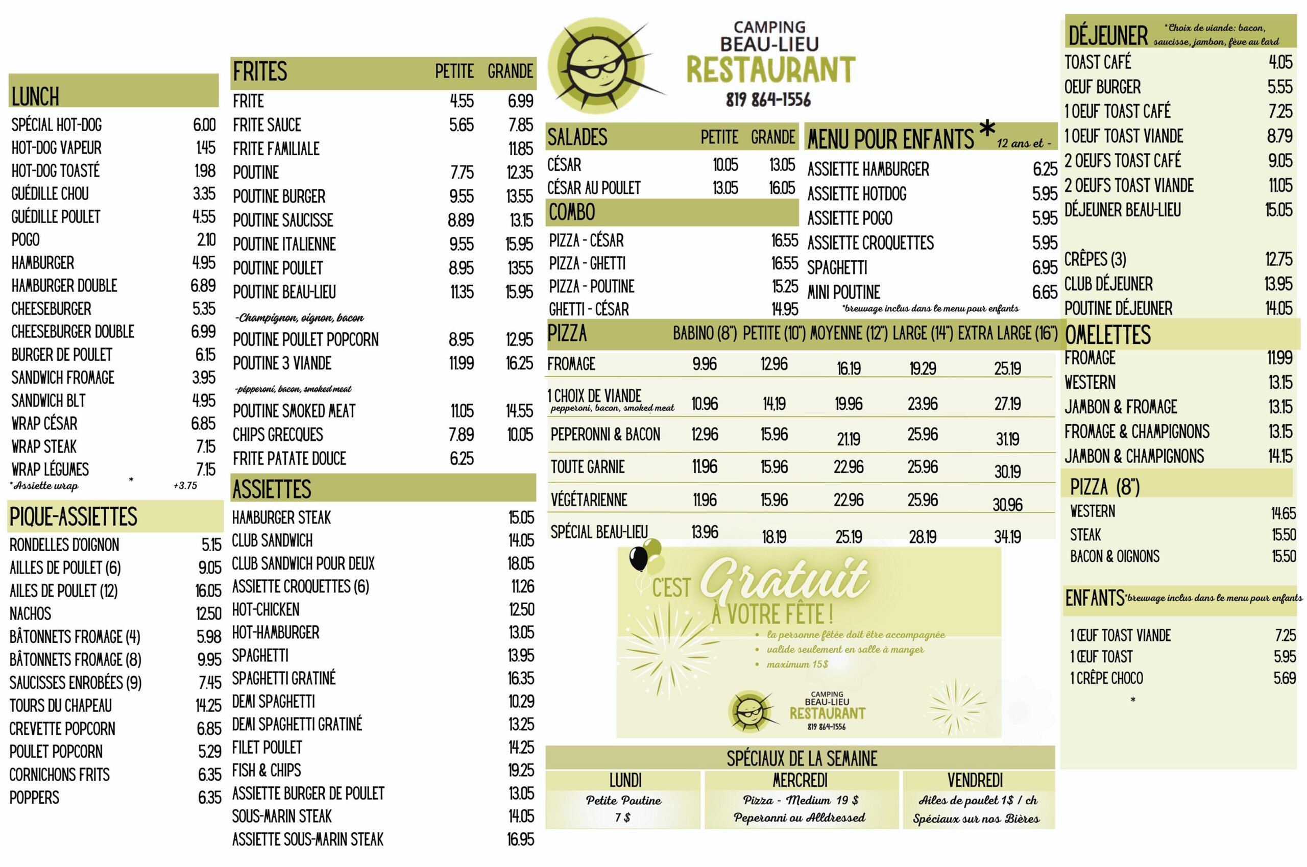 At Camping Beau-Lieu, Friday nights are something special. Starting at 5 PM, the restaurant becomes the beating heart of the campground. Campers gather for a lively "5 to 7" filled with great food, refreshing drinks, and an atmosphere of fun and connection. It’s the perfect way to kick off the weekend and unwind with friends and family.